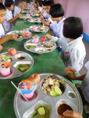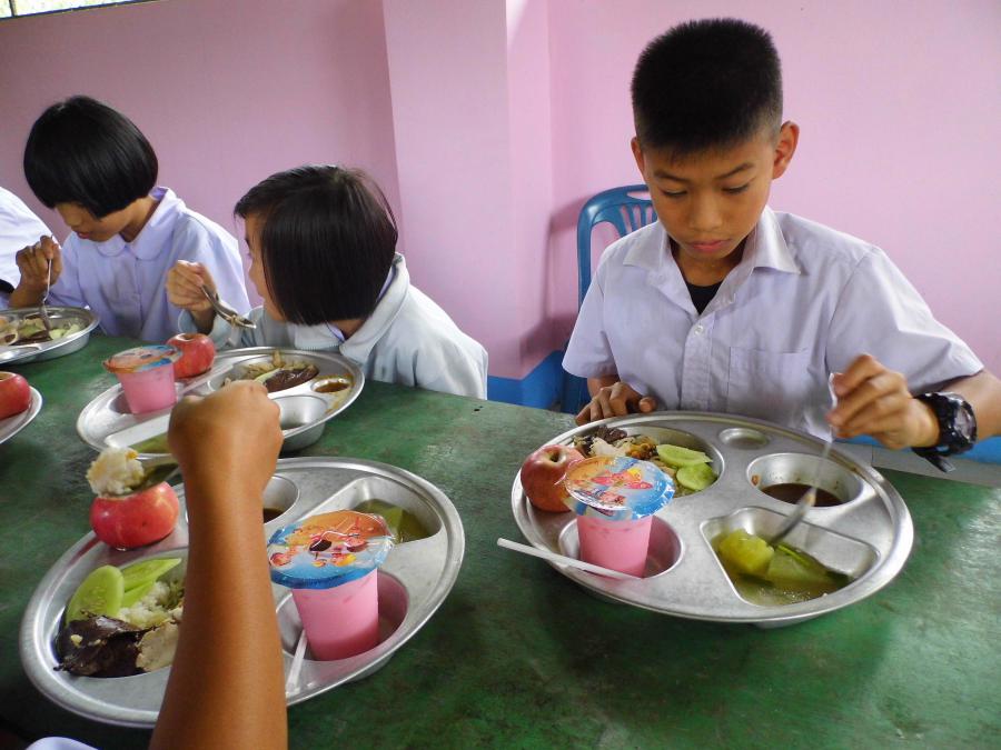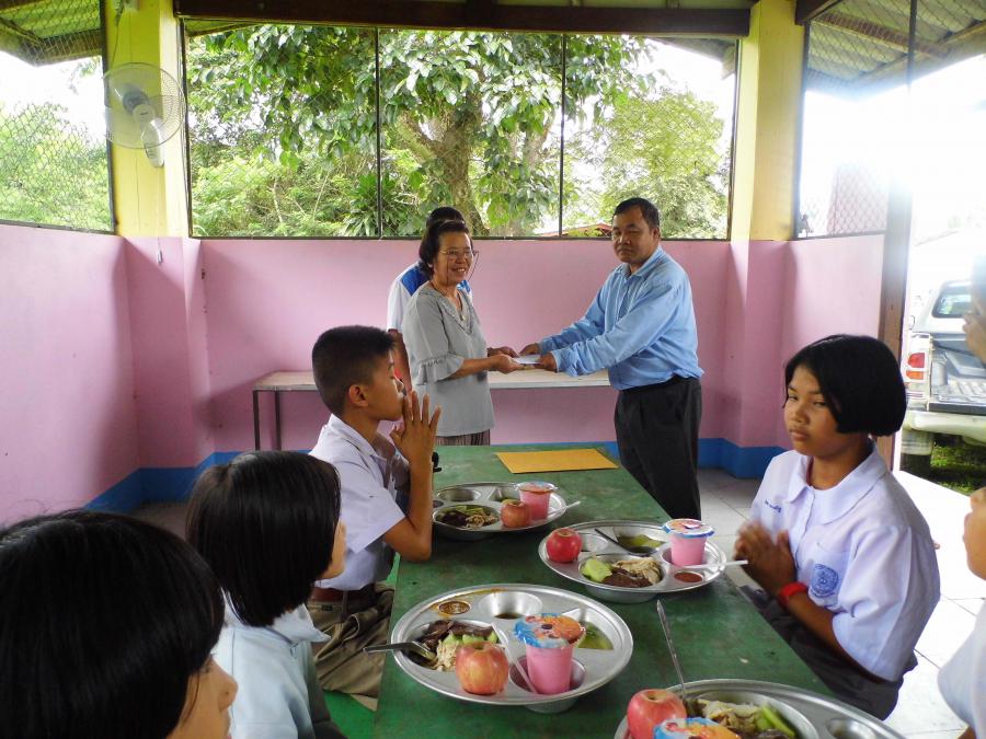ผู้ใจบุญเลี้ยงอาหารกลางวันนักเรียนและมอบทุนการศึกษา