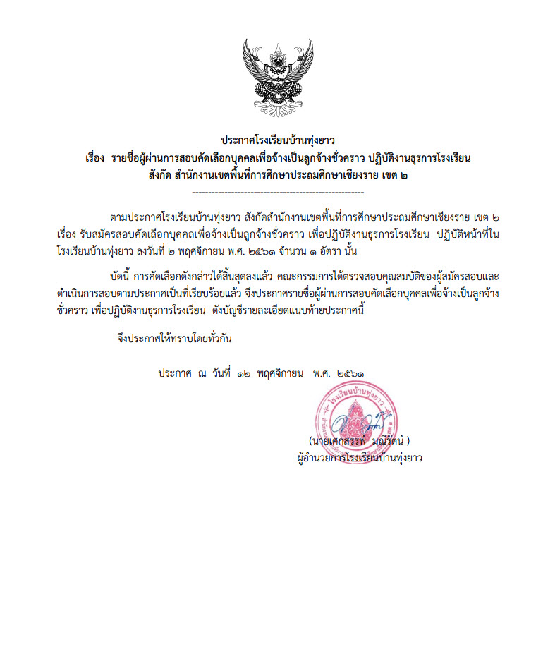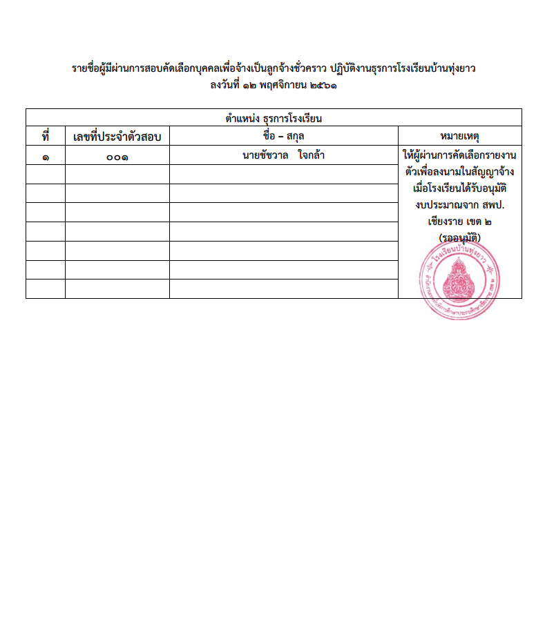 ประกาศผู้ผ่านการคัดเลือกธุรการโรงเรียน